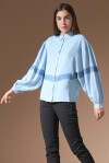 Camicia regular con manica ampia e arriccio, tencel fisso, lavaggio tye dye a fondo manica e corpo, di colore azzurro.