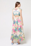 Long dress in cotton muslin with all-over macrofoulard print. V-neck, elastic waist and cut-out detail on the back. Lined.