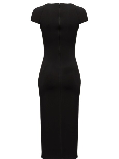 Long dress with a fitted line in technical viscose fabric with a monochrome fluid neoprene effect. Square neckline and short cap sleeves. Invisible zip closure in the center back.