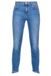 kinny jeans with asymmetrical fringed bottom, in stretch denim, medium blue wash.