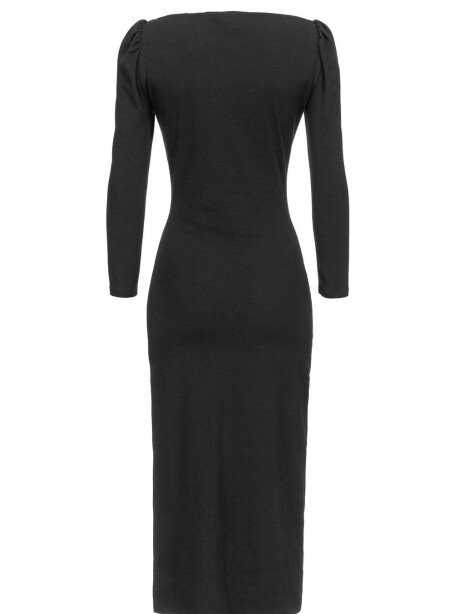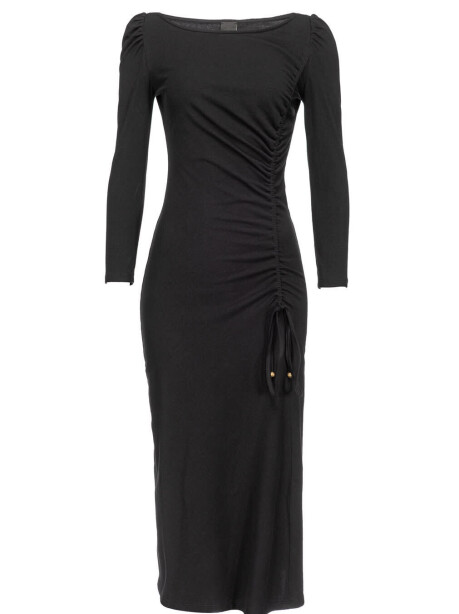 Un vestito chic e femminile con un twist sensuale, grazie alla linea aderente e al dettaglio arricciato, di colore nero. Date un twist rock al vostro look con una delle nostre giacche in pelle e un paio di anfibi. Per occasioni più chic, abbinatelo a un paio di décolleté e uno dei nostri blazer. Completate il look con una delle nostre Love Bag nel colore che preferite!