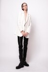 Blazer di ispirazione maschile in tweed fantasia con collo a rever, maniche lunge e tasche a filetto sui fianchi, nei toni del bianco, del beige e dell'argento. Foderata nelle spalle. Chiusura monopetto con bottone singolo personalizzato con logo Love Birds. Realizzato con materiale sostenibile che contiene fibre riciclate, con l'obiettivo di ridurre le risorse impiegate e aumentare la qualità dei prodotti.