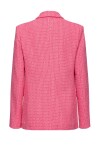 Blazer di ispirazione maschile in tweed fantasia con collo a rever, maniche lunge e tasche a filetto sui fianchi, di colore rosa confetto. Foderata nelle spalle. Chiusura monopetto con bottone singolo.