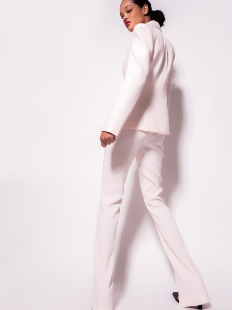 Blazer elegante dalla linea slim in tessuto crêpe stretch caratterizzato da cut-out in corrispondenza del punto vita, di colore rosa cipria. Collo a rever, maniche lunghe con spalle costruite e fodera interna in tessuto. Chiusura monopetto con fibbia metallica. - La modella è alta 177cm e indossa una taglia 40.