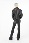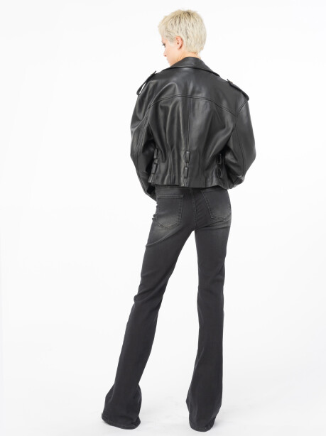 Jeans cinque tasche flare-fit in denim black stretch, di colore nero . Vita regular con passanti, cintura abbinata nello stesso tessuto con mini fibbia Love Birds in metallo e gamba dalla linea aderente, svasata al fondo. Personalizzati con ricamo logo Love Birds sulla tasca posteriore. Chiusura con zip e bottone a chiodo in metallo.