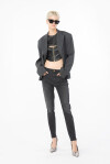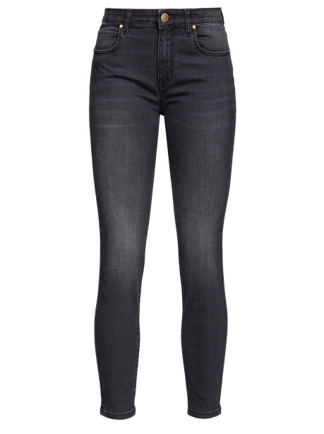 Jeans cinque tasche cropped skinny-fit in denim black stretch, di colore nero. Vita regular con passanti per cintura, lunghezza cropped e ricamo Love Birds su una delle due tasche sul retro. Chiusura con zip e bottone a chiodo in metallo.
