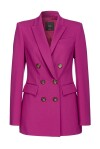 Blazer in tessuto tecnico di viscosa stretch lavorata a punto stoffa, di colore viola buganville. Linea avvitata con collo a rever, maniche lunghe, taschino a filetto lato cuore e tasche con patta applicata sui fianchi. Foderata. Chiusura doppiopetto con bottoni.