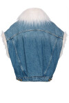 Giubbino smanicato in denim, dal lavaggio medio effetto used con dettagli in tessuto faux fur effetto pelliccia sul colletto e sul giromanica. Taschini con patta a punta e chiusura con bottoni in metallo personalizzati con logo Love Birds.