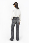 Camicia morbida in crêpe de Chine di misto seta caratterizzata da motivo di cut-out su una spalla, completato da fiocco da annodare, di colore bianco. Colletto a camicia e maniche lunghe a giro leggermente basso, con polsino e bottoni al fondo. Orlo asimmetrico, stondato e con pieghe davanti. Chiusura con bottoni davanti.
