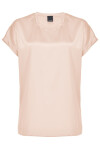 Short-sleeved top in stretch silk satin, with round neck and slightly rounded bottom on the back in powder color.