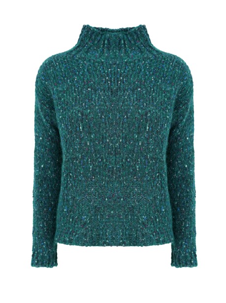 Turtleneck sweater with buttoned yarn, high collar with square bottom and long sleeves, in wool and mohair blend. A model with regular fit, slightly comfortable, multicolor in forest green shades.
