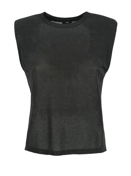 Sleeveless top in lurex knit with shoulder strap, soft and slightly transparent fit, black color.