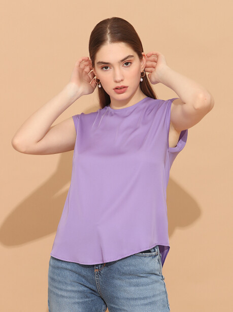 Armhole blouse with back slit, slipped effect, in wisteria color.
