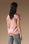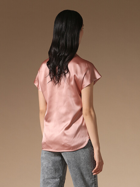 Short-sleeved blouse in antique pink stretch silk satin.