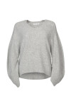 Soft mélange oversize sweater with long sleeves and wide cuffs, crew neck model. Rounded bottom, grey color.