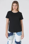 T-shirt girocollo a mezza manica con applicazione gioiello sulla spalla di perle o cristalli. Fondo stondato, vestibilità regolare, a tinta unita. 100% Cotone organico.