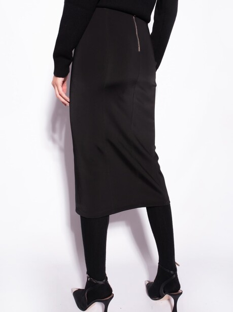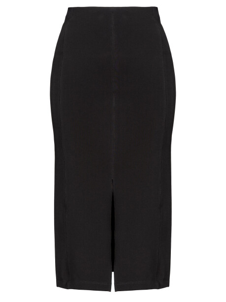 Gonna longuette dalla silhouette aderente in tessuto tecnico di viscosa fluido effetto neoprene caratterizzata da spacco centrale al fondo davanti. Chiusura con zip in metallo nel centro dietro.