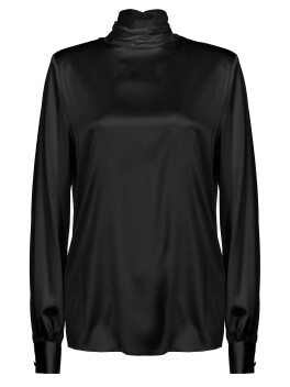 Camicia dal volume boxy in denim leggero. Collo a fusciacca da annodare a fiocco davanti, spalle con arriccio, maniche lunghe con polsino al fondo. Chiusura con bottoni davanti.