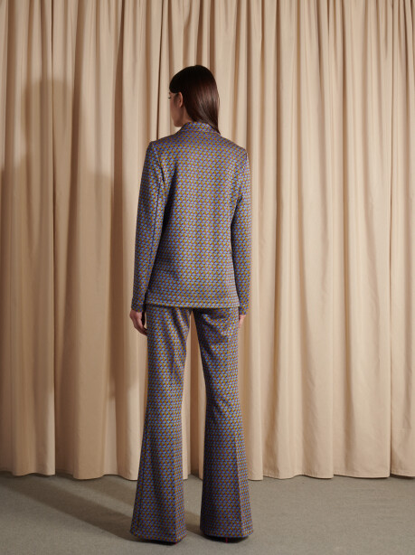 Giacca doppio petto a manica lunga in tessuto jacquard lurex e bottoni rivestiti.