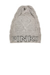 Berretto tipo cuffia in filato di viscosa stretch lavorato a trecce. Fondo capo risvoltato, lavorato a costine con ricamo logo PINKO impreziosito da piccole borchie sferiche in metallo, di colore grigio.