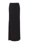 Gonna lunga dalla linea scivolata in tessuto interlock crêpe di viscosa, di colore nero. Silhouette incrociata che crea profondo spacco davanti. Chiusura con zip invisibile nel centro dietro.