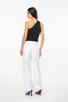 Pantaloni cargo in gabardina di cotone stretch, di colore bianco. Vita alta con passanti per cintura, tasche davanti, tasche a toppa applicate sul retro e maxi tasche stile utility laterali. Gamba dalla linea oversize con coulisse elastica a fondo gamba. Chiusura con zip e bottone. - La modella è alta 178cm e indossa una taglia 40.