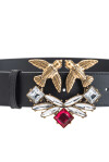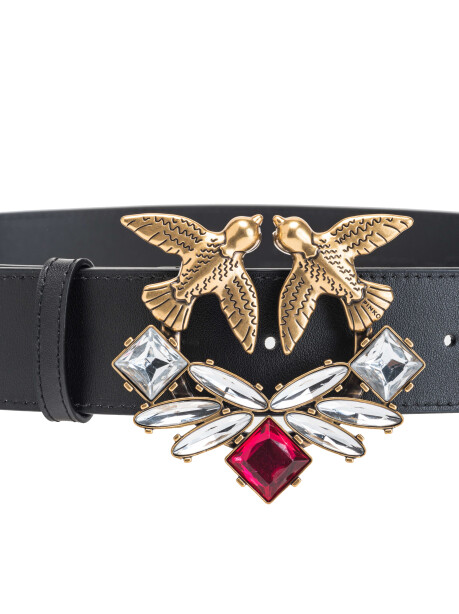Cintura da indossare alta in vita in morbida pelle mano seta con fibbia Love Birds Diamond Cut in metallo caratterizzata da castoni gioiello che creano un decoro prezioso.