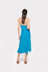 Abito midi elegante senza maniche in crêpe de Chine di misto seta, di colore blu. Linea scivolata e femminile, con spalline sottili, ampio scollo sul retro e dettagli drappeggiati davanti e sui fianchi. Gonna con dettaglio asimmetrico e spacco laterale davanti. Foderato. Chiusura con zip invisibile nel centro dietro. Questo capo è realizzato con materiale proveniente da foreste che vengono gestite secondo principi di sostenibilità, che viene certificata anche in tutta la catena di produzione. - La modella è alta 177cm e indossa una taglia 40.