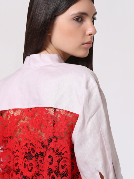 Questo vestito - chemisier è una piccola opera d'arte: lavorato con colori a contrasto e materiali dal tocco materico, come il lino e il pizzo, è perfetto per chi ama uno stile raffinato, chic e riconoscibile. L'effetto trasparente, infine, dona a questo capo un'anima sexy e seducente ma con classe. Indossalo da solo come abito insieme alla sua cintura - fusciacca, con sotto una sottana a contrasto, o smorzalo e rendilo più giovanile con shorts colorati e body o jeans e crop top.