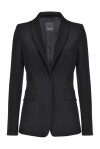 Giacca blazer a un bottone, con revers a lancia e tasche con patta. Tessuto in punto stoffa, leggermente elasticizzato, con fodera interna, di colore nero. Bottone in metallo oro con logo Love Birds e bottoni ai polsi. In misto viscosa, ha vestibilità da skinny a regular.