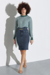 Gonna longuette pencil skirt in denim comfort, lavaggio vintage scuro. Vita alta dalla costruzione a bustier completata da cintura sottile nello stesso tessuto con fibbia metallica personalizzata con logo PINKO. Tasche a toppa sul retro e spacco centrale nel centro dietro.