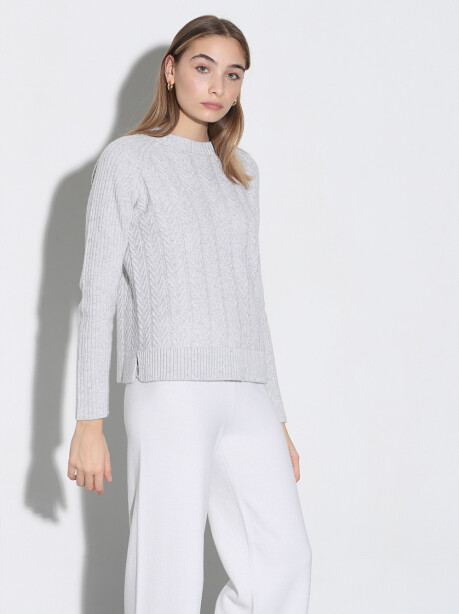 irocollo con lavorazione a trecce, spacchetti laterali, con maniche lunghe e fondo regolare sui fianchi. Modello dalla vestibilità regolare, leggermente comfort in misto lana e cachemire di colore grigio diamante.