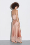 Elegante vestito sottoveste lungo in satin di misto seta, di colore cipria. Decorato con inserti di pizzo in tono applicati e intarsiati, scollo a V e spalline a bretelle regolabili. Gonna costruita con balza in pizzo smerlato al fondo. Chiusura laterale con zip. In misto acetato e seta, ha vestibilità regolare, leggermente slim.
