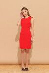 Vestito corto aderente senza maniche dalla silhouette a tubino in tessuto tecnico stretch. Dettaglio di bottoni dorati in metallo sulle spalle. Chiusura con zip invisibile nel centro dietro, di colore rosso.